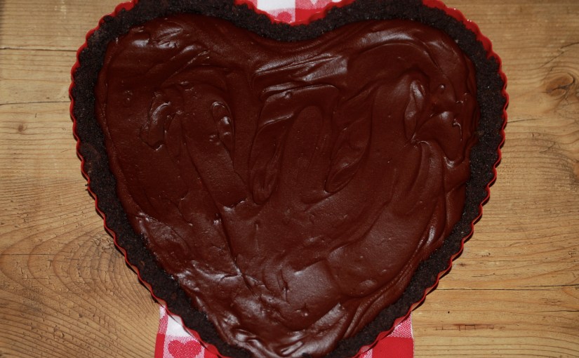 Typically this marvelous tart is made in a 10″ springform pan, but as you can see, it makes a perfect Valentine’s Day dessert when made into a heart. Either way, it is devine.